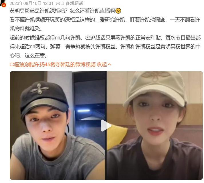 黄明昊和许凯的错乱雷同是出在《密逃》上,节目上两东说念主的互动很当然,仅仅两家粉丝一直不勉强,黄明昊粉丝曾去许凯直播间怼过他,不知是不是粉丝的言行让两东说念主结下了梁子。