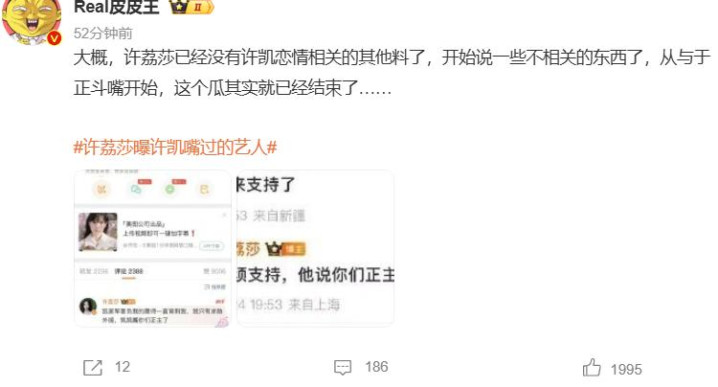 好多网友看了她这句话之后,第一响应是她又在搞概括,但她随后却在批驳区里径直挑明,我方要爆的是许凯嘴其他艺东说念主的料。