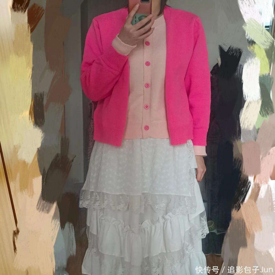 尤其是粗真挚的镂空罩衫,需要上半身很纤细的东谈主智商独霸得了。还好这位粉丝的躯壳高挑况且上半身纤细,穿起来智商不显痴肥。