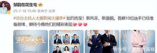 2025年7月18号,邹韵在外交平台上发了条动态,官宣我方要主办新一季的“主办东谈主大赛新闻主播季”了,还配了几张宣传照。像片里的她,自信满满,妥妥的C位范儿。
