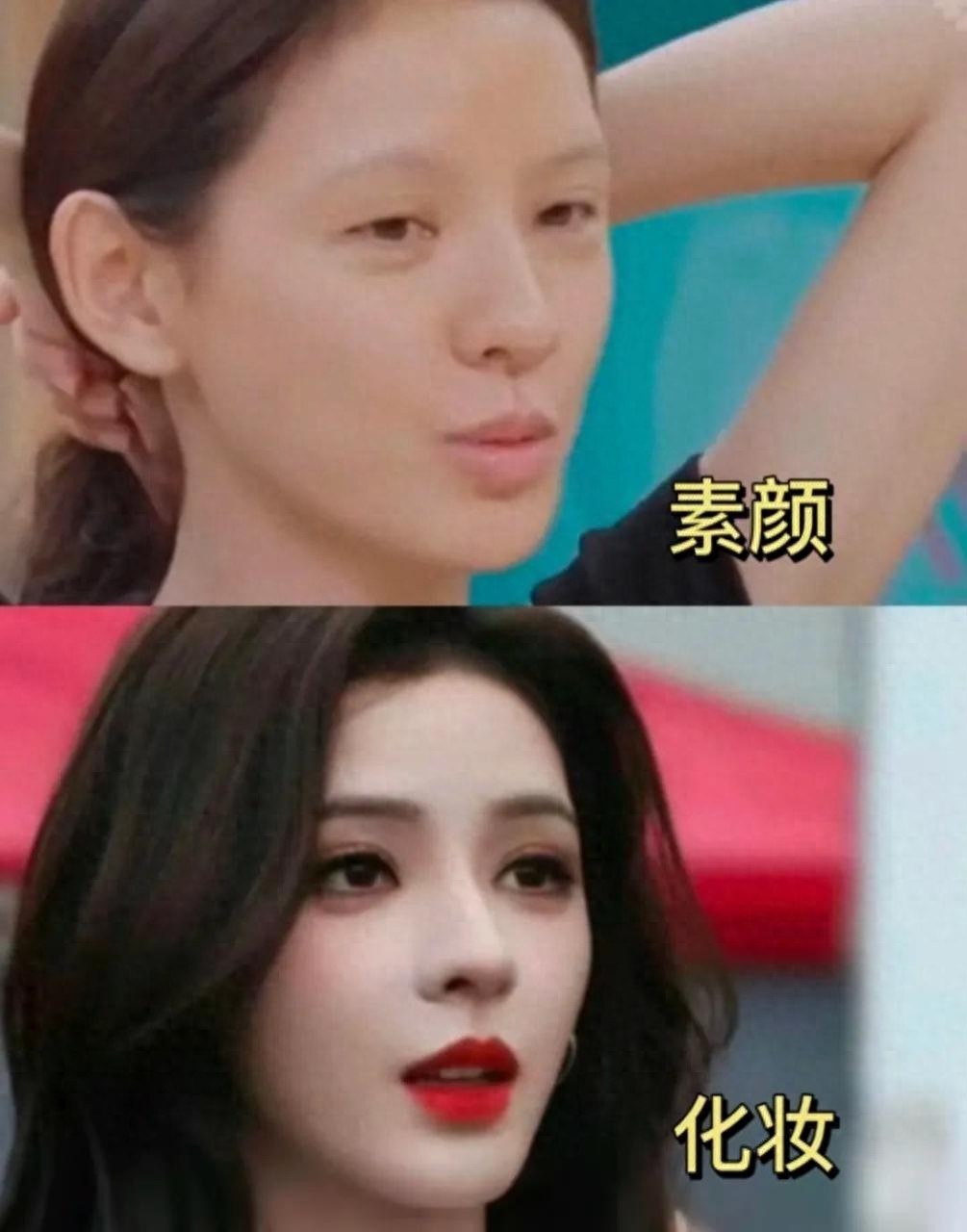通过不雅察几位女艺东说念主的素颜与妆后对比照,似乎找到了谜底。