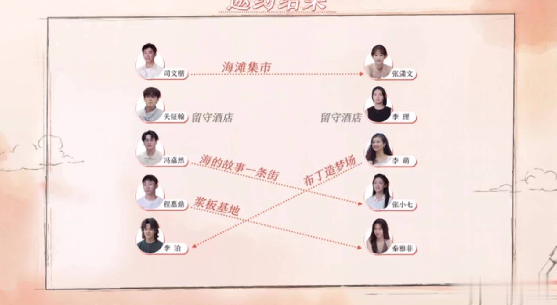 女嘉宾这边,张潇文因为受到四位男嘉宾的邀请,她遴选了同道路的关征翰、司文楷,很可以。