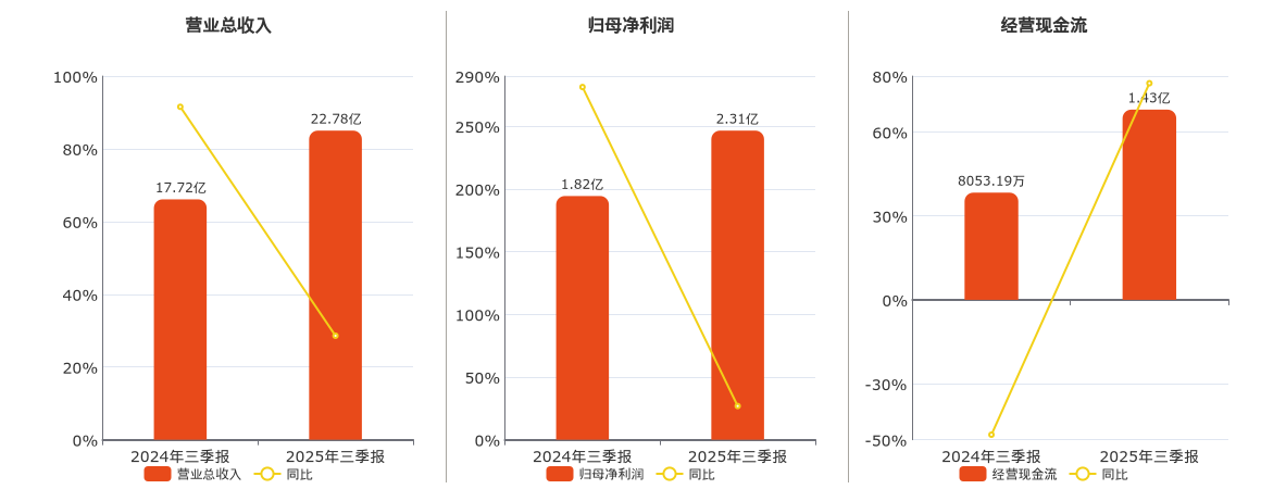 公司生意总收入为22.78亿元。归母净利润为2.31亿元。策动举止现款净流入为1.43亿元。