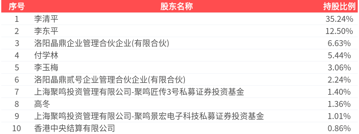 公司激动户数为1.35万户,前十大激动握股数目为9284.79万股,占总股本比例为69.75%ky体育官网登录入口网页版,前十大激动握股情况如下: