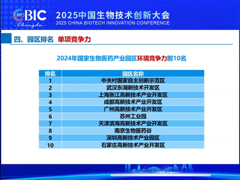 在环境竞争力单项排名中,苏州工业园区、南京生物医药谷分别列第6名、第8名。