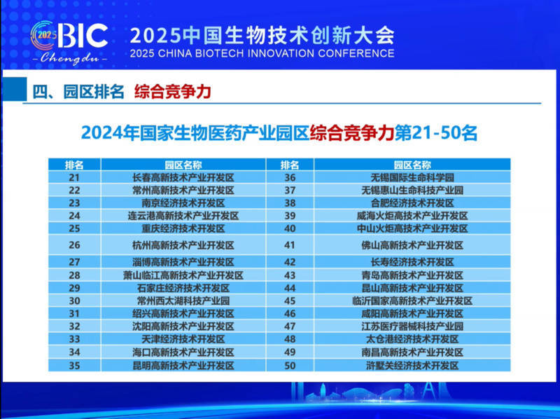 10月30日,2025中国生物时间编削大会在四川成王人开幕。开幕式上,中国生物时间发展中心现场解读《2025中国生物医药产业园区竞争力评价及分析申报》,其中公布的“2024中国生物医药园区竞争力排名榜”泄漏,在概括竞争力前50名中,江苏生物医药产业园区占17席,约占总额的1/3。