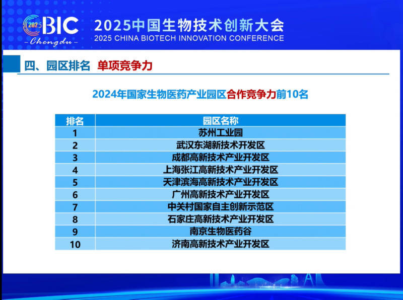 在相助竞争力单项排名中,苏州工业园区、南京生物医药谷分别列第1名、第9名。