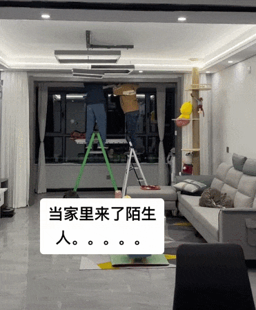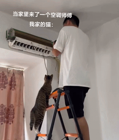 “看到有东说念主来修空调,我家猫一都打着滚冲到卧室,又炸着毛冲出客厅,好凌乱,听动静还以为它冲去卧室拿机关枪去了。”