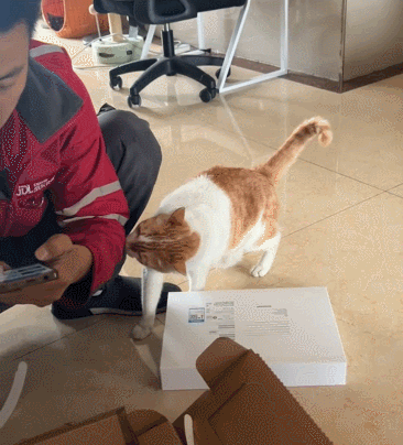 家里来快递小哥,猫咪凑近闻个握住,舍不得走开,猖獗给我方丰容。